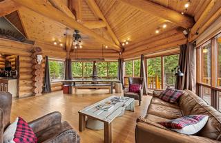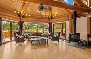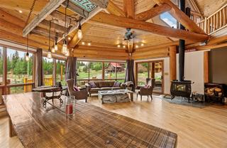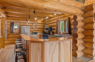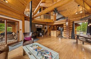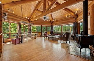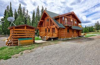 Escape to the tranquility of Mile High Resort Community This stunning log home nestled amidst the beauty of nature. Crafted with 12-16 inch Douglas Fir logs and adorned with maple hardwood floors. The heart of the home lies in the large kitchen, featuring a huge island and raised eating bar, perfect for casual dining or hosting gatherings with friends and family. The kitchen is equipped with 6 burner antique looking propane stove and ample storage space, making it a chef's delight. The master suite is complete with its own balcony overlooking the serene surroundings. The ensuite bathroom with a double shower and oversized jetted, soaker tub. Murphy bed downstairs with pull out couch so could sleep 12 if needed. Crawl space for storage or kids play area. Outside, the 0.26 acre lot provides space for outdoor activities and relaxation. Enjoy shared lake access and snow removal services included in the modest strata fee of $114.79 per month (water, sewer, and management services). Contact Listing Realtor for showing availability dates due to the home being used as a VRBO currently.