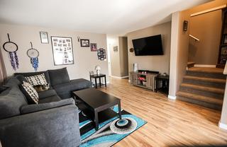Nestled in the highly sought-after Bachelor Heights community, this spacious 4-bedroom, 2.5-bath townhouse offers an exceptional combination of comfort, functionality, and style. The open-concept main floor seamlessly integrates the living, dining, and kitchen areas, creating a bright and welcoming environment that is ideal for both entertaining and day-to-day living. From the main level, step out onto the deck to enjoy sweeping valley and mountain views, a perfect setting for outdoor dining and relaxation. The upper floor is thoughtfully designed, featuring a generous primary suite with a walk-in closet and a full ensuite bath. Two additional bedrooms and a well-appointed 4-piece main bathroom provide comfortable accommodations for family or guests. The finished basement enhances the home’s versatility, offering a fourth bedroom, utility room, and a combined family and laundry room with walk-out access to the fully fenced backyard. A side gate provides easy access from the yard to the front of the property. Additional features include central air conditioning, a single-car garage, and an economical bare land strata permitting pets and rentals (with restrictions). Guest parking is available. Stagecoach Park is nearby, offering convenient access to green space and recreation. All measurements are approximate and should be verified if important. Quick possession is available, making this a rare opportunity to move in and enjoy right away—book your showing today.