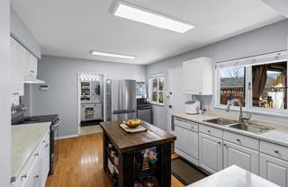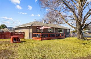 You HAVE to check out this rancher that is on a large corner lot! Entering the home, you'll immediately feel the coziness of the living room with a fireplace (previous owner had electric insert) and large window to allow the brightness in. With 4 bedrooms and 2 bath (both baths completely reno'd), there's plenty of room for a family - with a bonus room on top having living room and dining room space! Updated painting and LED lighting, furnace control board replaced 2022. Outside features newly stained front and back sundecks, a huge driveway with RV parking that's been resealed (2024). Front yard has u/g irrigation, back yard has gardens ready for your veggies to grow, and is wired for a hottub. Imagine sitting out there under the gazebo, relaxing all summer! All measurements approx to be verified by Buyer if important.