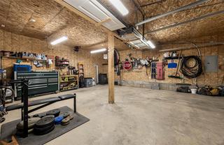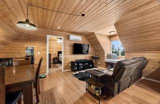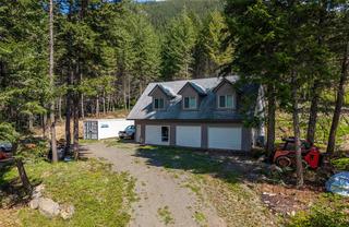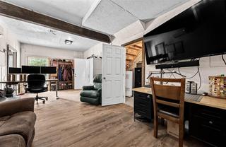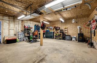 Nestled on a secluded 9-acre lot, this unique 1-bedroom, 1-bathroom home presents an incredible opportunity for those looking to build their dream residence. Thoughtfully designed above a spacious triple garage, it offers a cozy yet functional living space with modern amenities and comfortable interiors. One of the garage bays has been converted into a versatile office but can easily be restored to its original use. The shop is well-equipped with a pellet stove, a 125-amp panel, and a 240V plug, making it ideal for a variety of projects. Plus, with a second hydro meter already installed, the groundwork is set for future development when you're ready to bring your dream home to life. Measurements approx.