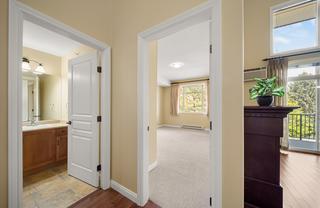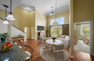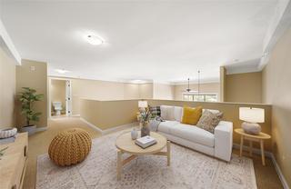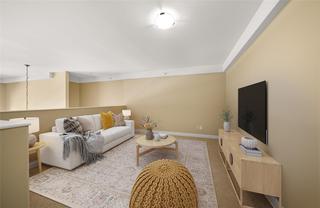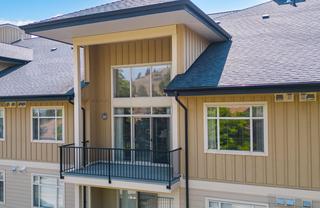 Welcome to Hillside Lofts! This is not your ordinary condo! Convenient location close to transit, shopping, TRU, restaurants, and Kenna Cartwright Nature Park. This newer executive top-floor condo redefines luxury living and is the perfect place to call home. As one of the largest units in the complex, this condo offers a lifestyle of comfort and style. Spacious 1657sqft, open-concept, 2 bdrms + bonus loft area, 3 full baths, engineered HW and tile floors, $10K in custom window coverings, quality finishes and striking 17ft high vaulted ceiling. Spacious kitchen with granite counters, SS appliances and eating bar. Entertainment-sized living room with electric FP and oversized glass sliding doors leading to a large covered deck on the desirable quiet side of the Complex. Master suite features his/hers closets and full ensuite bathroom with separate shower and soaker tub. Convenient in-suite laundry room offers extra storage. Bonus upper loft area with a full bathroom can be a studio, bedroom, den, TV room or flex space. Secure u/g parking, storage locker. Hot water is included in strata fees. Quick poss. Some photos have been digitally staged.