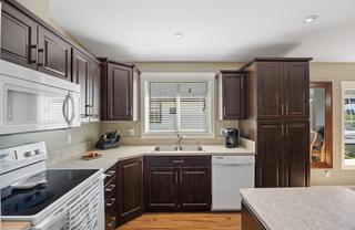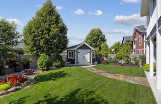 Welcome to this well-maintained 3-bedroom, 3-bath rancher with a full basement, offering space, comfort, and functionality in one inviting package. Located with a sunny south-facing back yard and deck, this home features triple-pane windows that keep the interior quiet and energy-efficient year-round. Step into a bright and open main floor, where the kitchen boasts a convenient island with built-in storage - perfect for prepping meals or casual dining. Just off the living room, a spacious back deck with adjustable louvers creates an ideal space for outdoor entertaining, rain or shine. Downstairs, you'll find additional living space and flexibility to suit your needs. The one and half-car garage is more than just a place to park - it features a high ceiling, a sturdy workbench, and a sink, making it a great space for projects or hobbies. There’s even seasonal RV parking on the property for added versatility. Enjoy a backyard that’s been smartly expanded with a relocated fence to offer more usable space. The landscaped yard includes a patio with louvered coverings and sunshades, a shed wired with power inside and out, and an underground irrigation system to keep everything green with ease. Inside, the dedicated laundry room offers plenty of storage and convenience. This home combines practical upgrades with thoughtful outdoor enhancements, making it perfect for families, downsizers, or anyone looking for a move-in ready property with room to grow. Extra bonuses are new microwave and HWT! All measurements to be verified by Buyer if important.