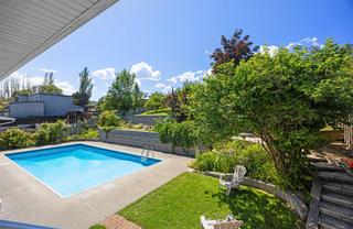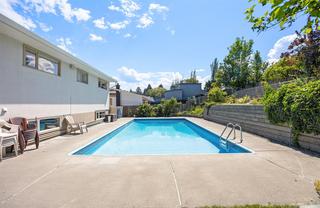 Super conveniently located in the centre of the city. Close to shopping, schools, university, restaurants, transportation and recreation, this location is perfect! This 4 bedroom 3 bathroom family home has more than 2400 sqft of living space and features a street level 27x18 garage, and an awesome back yard oasis, beautifully landscaped with a heated in-ground swimming pool. Not to mention the spectacular views from the main floor living room and deck. Other features include 5year old hot water tank, high efficiency furnace, underground sprinklers, 2 wood burning fireplaces, 2 piece ensuite bathroom and many more. Home offers a great possibility of a suite with separate basement entry. Great location with a great backyard oasis, a must see!