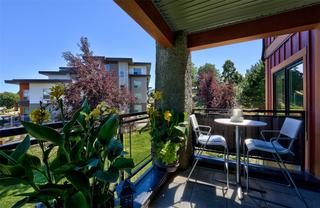 With two expansive covered decks boasting views of lush greenery and offering nearly 550 sq ft of outdoor living space, located in the first building - built with geothermal heating and cooling, this is arguably one of the most desirable units in Summit Pointe! This original owner 2 bedroom & den unit with 2 full bathrooms has been meticulously cared for and tastefully updated with vinyl plank flooring throughout and white kitchen cabinetry that is adorned by natural light pouring into this southeast facing corner unit. Easily accessible, this spacious ground floor unit, just under 1200 sq ft includes one underground parking stall as well as a storage locker that is conveniently located right across the hallway. The building has it's own fitness center located on the same level as this unit and multiple outdoor common spaces to choose from throughout the complex. Walking distance to so many restaurants, shops, grocery stores and all other amenities a person needs, nearby Peterson Creek Park and next to a bus stop with service to TRU and downtown, centrally located Summit Pointe is an ideal choice! Pets and rentals allowed with restrictions.