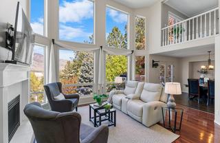 Sophisticated Urban Appeal | Luxe Entertaining & Income Potential with Unmatched Views! Step into this custom-built 3,500 sq.ft. home, thoughtfully designed for discerning professionals and lifestyle-focused buyers. Perfectly situated on a private, professionally landscaped 0.5-acre lot, this stunning property offers a rare blend of upscale comfort, seamless entertaining, & valued income potential, all framed by sweeping panoramic mountain views. The main floor is ideal for gatherings, with 9’ ceilings & a dramatic 16’ vaulted living room showcasing a wall of windows that bring the outdoors in. At the heart of the home is a chef-inspired kitchen that flows effortlessly into a formal dining room & an expansive outdoor deck complete with pergola, water feature, & curated gardens. Upstairs, the private primary suite feels like a boutique retreat, with its own balcony and breathtaking elevated views. The lower level features a bright guest space with French doors opening to the backyard oasis, perfect for hosting or a lovely home office. A 1-bedroom w/den walk-out suite, private entry, & dedicated parking adds income potential or multi-generational flexibility. Additional perks include a triple-paved driveway w/RV parking, tranquil outdoor living with direct access to hiking/biking trails, & thoughtful architectural charm. This home offers more than just living, it offers a lifestyle: modern, elevated, & income-smart. All measurements approx. Quick Possession Possible.
