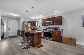 Located in sought-after Pineview Valley, this updated 3-bedroom, 1.5-bathroom townhouse has one of the best locations in the complex and sits just steps from Pineview Valley Park, scenic hiking and biking trails, and everything this family-friendly neighbourhood has to offer. Here, access to nature isn’t an occasional treat - it’s part of your everyday routine. The main floor features an open-concept layout filled with natural light. The kitchen, dining room and living room overlook Pineview Valley Park, with sliding doors that lead to a private balcony with space to relax or barbecue. Downstairs, all three bedrooms have been updated with brand new laminate and fresh paint. The spacious primary bedroom includes direct access to a quiet, walkout patio - a perfect way to start your day or unwind outdoors. Other features include central air conditioning, built-in vacuum, a laundry room with stacked washer and dryer, under-stair storage, and two parking spots: one single-car garage and one assigned stall. The well-managed strata allows pets and rentals with low monthly fees. A brand-new elementary school is scheduled to open in Pineview in summer 2026, bringing even more value to this growing neighbourhood. With quick access to Costco, Aberdeen shopping and amenities, bus routes, and the highway, this home offers the ideal blend of everyday adventure and city convenience