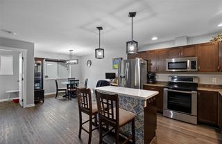 Welcome to this immaculate, turn-key half duplex in the highly coveted Northgate Complex. This family-oriented 3-level home is in the best location in the complex. The main floor features an open-concept layout, a cozy corner gas fireplace, and a covered patio that opens to a private green space, perfect for year-round enjoyment. The kitchen, with its convenient island, is equipped with sleek stainless steel appliances. Upstairs, you'll find three bedrooms, including a large primary bedroom with its own 4-piece en-suite. In addition to the en-suite, a second full bathroom is located upstairs, while a handy two-piece bathroom serves the main level. Basement level attached to the garage also has a den/recroom that is very handy. Located across the street from Pineview Valley Park, this home is also just minutes from shopping at Costco and Aberdeen Mall, bus routes, and local hiking trails. Don't miss your chance to call this exceptional property your new home!