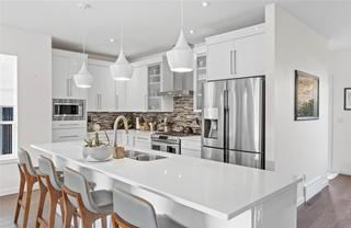 Welcome to your new standard of living—a sophisticated collection of executive modern townhouses designed for discerning buyers who value style, space, and convenience. This stunning 3-bedroom, 3.5 bath home offers the perfect blend of contemporary architecture and premium finishes, tailored for urban professionals and growing families alike. Step inside and experience light-filled open-concept living spaces with high ceilings, sleek engineered hardwood flooring, cozy gas fireplace and expansive windows. The gourmet kitchen boasts quartz countertops, stainless steel appliances, custom cabinetry, and a large island perfect for entertaining. Upstairs, the primary suite is your personal retreat, featuring a walk-in closet and a spa-inspired ensuite with double vanities, glass shower, and elegant tile work. Two additional bedrooms and full bath to provide comfort and privacy for family or guests. Ascend to your private rooftop patio—a rare luxury—where you can unwind, host guests, or simply enjoy panoramic views of the surrounding city-scape and mountains. Other details include newer furnace. Double garage. Rough in central vac and space for an elevator! This property ticks all the right boxes. Call now for details and showings.