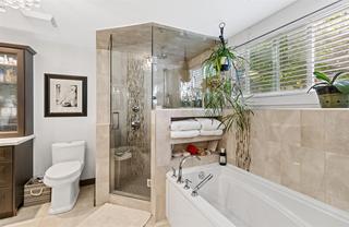 Beautifully updated half duplex, centrally located. No expense spared in this 3 bedroom/2 bathroom home. Ready to be enjoyed - with a custom breezeway connecting the double heated garage to the rest of the home. Extensive update list includes industrial laminate flooring, windows (2015), roof (2017), new electrical panel, hot water on demand, heated master ensuite floors, gas fireplace, new kitchen and high-end appliances. Rec room with a wet bar, master bed, large spa-like ensuite, and laundry are on the first floor. The second floor contains the garage, breezeway, and patio access to a gorgeous pergola covered patio and fenced yard. The top floor finishes with the open concept kitchen and living area, two bedrooms and a spacious bathroom. Lots of space for parking and storage.