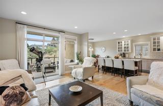 820-15 Hudson Bay Trail offers 2,831 sq. ft. of thoughtfully designed living in an end-unit townhome that blends comfort, functionality, and elevated style. The main level features an open-concept floor plan with hardwood floors, a welcoming entry with front closet and pantry, and a bright living room where expansive views take center stage. The luxury kitchen includes a gas stove, oversized island, and ample storage, seamlessly connected to a dining area ideal for gatherings. This level also offers a two-piece bathroom, garage access, and a stunning deck with natural gas hookup overlooking the river and mountains. Upstairs are three spacious bedrooms, including the primary suite with walk-in closet, spa-inspired ensuite with heated floors and soaker tub, and a private deck with uninterrupted views. A full laundry room and additional bathroom complete this floor. The lower level provides a large rec room that opens to a private rock garden, a fourth bedroom, full bathroom, gym, and storage. Upgrades include a new hot water tank with 10-year warranty, central vacuum, central humidifier, and ample parking Residents enjoy access to a swimming pool and fitness centre enhancing the lifestyle appeal. With panoramic views, quality finishes, and a prime location, this home is ideal for both family living and entertaining.