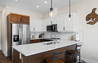Beautiful five year old detached home in the Monarch section of Orchards Walk in Valleyview! This three bedroom/two and a half bathroom basement entry home featuring 9 foot ceilings on both levels, is bright and spacious! The large kitchen offers upgraded stainless steel appliances, stone countertops, eating bar and open concept living. The sun deck off of the main living area has a gas BBQ outlet and offers sunshine and peaceful views. Single car garage with extra parking in the driveway, fenced backyard, underground sprinkler system and central air conditioning. Bare land strata fee of $225/month includes City of Kamloops water, sewer & garbage, yard maintenance, snow removal and community center with amenities including a gym and pool table! Two pets allowed and long term rentals (no Airbnb) allowed.