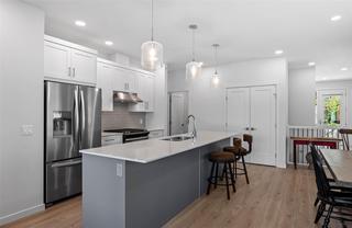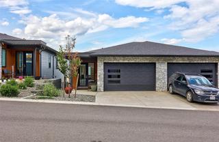 Welcome to this beautifully maintained 1/2 duplex, just 4 years old and located in a quiet bare land strata with low monthly fees. This spacious rancher-style home offers 3 bedrooms and 2.5 bathrooms, with a layout designed for both comfort and practicality. The main floor features a bright, open-concept living space with a large modern kitchen, dining area, and living room that opens onto a balcony with stunning mountain views. The primary bedroom is conveniently located on the main level and includes a walk-in closet and a private ensuite bathroom. Downstairs, you'll find two additional bedrooms, a family room, a huge media room, and plenty of storage space—ideal for guests, entertaining, or a growing family. The home also includes a one-car garage equipped for EV charging. Set in a peaceful and well-managed community, this home is close to nature, trails, and local amenities, offering the perfect blend of low-maintenance living and modern comfort. Call me today to book your viewing! All measurements approximate and to be verified by the Buyer.
