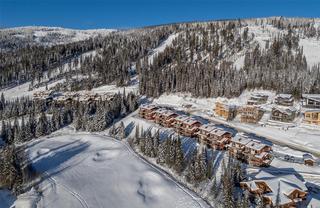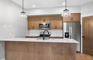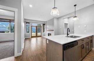 Two year old, ski in/ski out, cozy & modern mountain getaway! Enjoy with friends & family, rent out nightly or a little of both! Start planning for the winter ski season now! Located in one of Sun Peaks' newest complexes, Powder Heights, alongside the 15th Fairway this 2 bedroom/2 bathroom townhouse is vacant and ready for new ownership! Enjoy the privacy of an end unit with a personal storage locker next to the door for all of your bike, golf and ski equipment needs, one dedicated parking stall and conveniently located next to the visitor parking stalls. The open concept floorplan is excellent for cooking and entertaining with plenty of space flowing to the outdoors through double glass doors to your large, south facing covered patio and grass area, perfect to watch your kids and pets play! The spacious kitchen was designed with style and function boasting a large pantry, sprawling quartz countertops, stainless steel appliances, eating bar and ample cabinetry. Offering heated tile floors and a cozy fireplace to keep warm on a chilly winters day! Don't miss this wonderful opportunity! GST is applicable.
