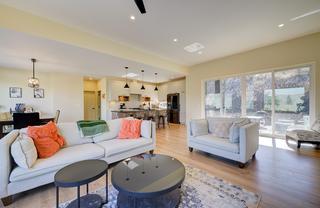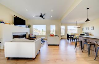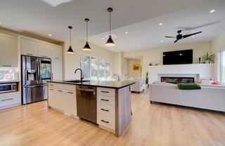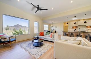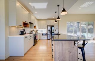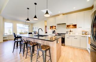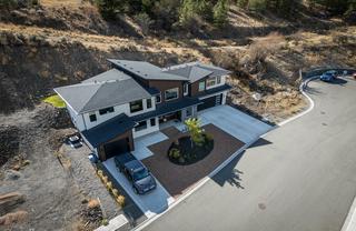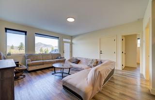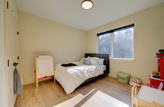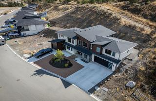 First Time on the Market in Juniper West! This custom-designed, one-of-a-kind home built by Fidanza is ideally situated at the end of a quiet cul-de-sac on Galore Crescent. Set on a spacious 8,567 sq.ft. lot, the property features a unique layout with a fully self-contained 1-bedroom legal suite—complete with its own private garage—located on the east side of the home, offering excellent flexibility and income potential. The main residence occupies the west side and boasts 3 spacious bedrooms upstairs plus a convenient office on the main entry level. The interior is tastefully finished with a mix of laminate, tile, and vinyl plank flooring, and the open-concept main living area features raised ceilings and sweeping valley views. The stylish kitchen is a true showpiece, with a large island ideal for entertaining and modern two-tone cabinetry that adds a designer touch. Enjoy privacy, a premium location, and the benefit of a mortgage helper—all in one exceptional home. All measurements are approximate and should be verified by the buyer.