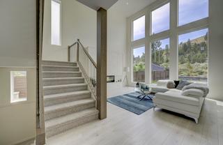 Showcasing an exceptional blend of design, comfort, and smart functionality, this beautifully finished home backs directly onto protected green space in Kenna Cartwright Park—offering an uninterrupted natural backdrop with no future development behind. The large, level backyard and expansive 12’ x 25’ covered deck (added in 2024) create an ideal setting for outdoor living and entertaining. Inside, the home exudes modern elegance with a dramatic two-story great room, floor-to-ceiling windows, and an open-concept layout designed for effortless flow. The kitchen is a true showpiece, featuring a full-length window backsplash, quartz countertops, premium appliances, ceiling-height cabinetry, and a spacious island. A pass-through pantry conveniently connects to the mud room. The primary suite offers a private retreat with natural light, a large walk-in closet, heated tile floors, a freestanding soaker tub, and access to a covered deck. The fully finished basement provides versatile additional living space, perfect for a media room, gym, or family lounge. This home also includes a new central vacuum, garage floor epoxy , and smart home features such as a Nest thermostat, custom window shades are installed throughout for both style and function. Ideally located just steps from the trails of Kenna Cartwright Park, this home offers a seamless connection to nature alongside refined, modern living.