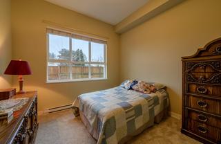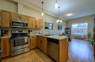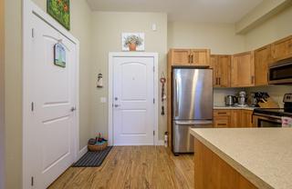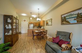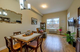 Enjoy a relaxed, senior-focused lifestyle just steps from shopping and everyday conveniences! This bright ground-level home features an open-concept layout with soaring ceilings, two generous bedrooms, one and a half bathrooms, and a private patio—perfect for your morning coffee. The modern kitchen is equipped with stainless steel appliances, and in-suite laundry adds extra ease to your daily routine. Built in 2014, the complex offers an impressive array of amenities, including a fitness center, library, theater, games room, workshop, and community garden. Pet-friendly and wheelchair accessible, it’s designed for comfort and connection. Optional dining services are also available for an additional fee. Book your private showing today!