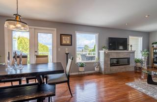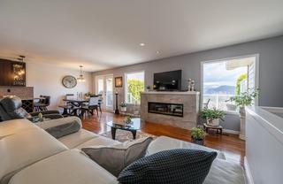 A view to LIVE for! Wonderfully updated and meticulously cared for Sahali home with gorgeous views of the surrounding mountains. This level entry rancher with basement offers an open concept main living space with large picture windows. The kitchen features cherry cabinets, granite counter tops, SS appliances, eating bar and built in wine storage. Stove is 2 yrs old. The dining room walks out to the large deck with steps down to the yard. With 2 bedrooms and an office/den on the main floor, the primary bedroom is a good size and offers a 2 piece ensuite with a large closet. Separated by a 4 piece main bath is the second bedroom and the den. There is also added insulation in the attic. Downstairs you will find a good size bedroom, large family room, a crafts room, a storage room, a fresh 3 piece bathroom and laundry room with a sink. From the family room, you can walkout to a concrete patio, covered by the sundeck to a fully fenced backyard. The property has sprinklers for the lawns, garden and the garden pots. There is a 30 amp RV hookup for RV parking, additional open parking and a 1 car garage. There is a door from the garage to the kitchen. Updated windows, top up and bottom down blinds. 4 yr old hwt, furnace and heat pump are approximately 15 yrs old, W/D 4 yrs old. The home features hardi plank siding with smart trim. The property also extends a little further past the rear fence. Located only 2 blocks to Sahali Elementary, transit, with Peterson Creek nearby.