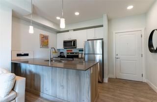 Welcome to The Colours at Spirit Square, where Unit 311 stands out as a meticulously maintained one-owner residence that is now available for its next occupant. This bright and spacious one-bedroom plus den home offers a layout designed with both comfort and efficiency in mind. The main living area flows naturally into the kitchen and dining space, creating a welcoming atmosphere that is perfect for both everyday living and entertaining. The kitchen features stainless steel Whirlpool appliances, modern cabinetry, and custom backsplash accents, while the living room is enhanced with laminate flooring and tasteful feature wall touches that bring added warmth and style. The bedroom provides a quiet retreat, while the well-proportioned den offers excellent flexibility as a home office, hobby area, or guest space. Additional highlights include in-suite laundry and a well-planned floor design that makes the home feel larger than its square footage suggests. Residents of The Colours enjoy access to a private fitness center, secure bike storage, and dedicated parking. The location is ideal, set just off the lively Tranquille corridor with its variety of restaurants, coffee shops, services, and shopping, as well as McDonald Park only a block away. With pets and rentals permitted, this home is appealing to both homeowners and investors seeking a reliable opportunity. Move-in ready and carefully cared for, Unit 311 delivers exceptional value in a vibrant, convenient neighborhood.