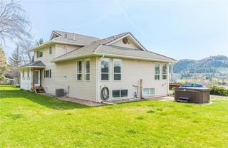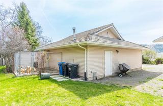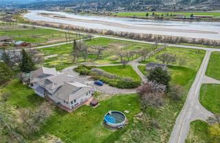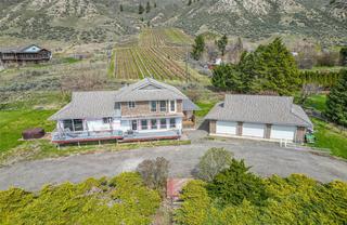 Experience the serenity of country living just 20 minutes from the city in this beautifully updated, quality-built family home with a 3-car detached shop and bonus guest garden home. Nestled among lush foliage and backing onto a picturesque vineyard, this 5-bed, 4-bath home has been thoughtfully renovated with modern comforts while maintaining its warm, inviting charm. The expanded main floor features a large entryway, spacious custom laundry room, and a stunning open-concept kitchen with high-end finishes. The kitchen flows into the cozy family room with a gas fireplace—perfect for entertaining or everyday living. Formal dining and living rooms add elegance and flexibility, and a main-floor bedroom and updated 3-piece bath offer convenience, with backyard access to a hot tub and above-ground pool. Upstairs offers two beautiful primary suites, each with private ensuites. The fully finished basement includes two more bedrooms, a 4-piece bath, and a massive crawl space for excellent storage. Highlights include 200-amp service, underground irrigation, 2x6 construction, 8” concrete basement floor, and a water filtration system. The triple garage (1,000+ sq ft) includes a workshop area ideal for hobbyists. Outside is a fully detached, self-contained 1-bed guesthouse with a 4-piece bath, laundry, and covered parking. Easy South Thompson Riverfront access and room to expand for kids or animals.